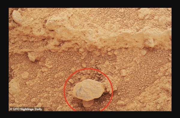 Фотографія з марсохода Curiosity, зроблена 19 вересня 2013 року, знову викликала інтерес після того, як дослідник Скотт Ворінг помітив на ній об’єкт, що нагадує гриб. «Цей об’єкт має вигнуту нижню частину стебла, таку ж, як і на Землі», – прокоментував він. У соцмережах користувачі швидко припустили: це може бути ознака життя на Марсі. Але наукова спільнота, як і раніше, ставиться до таких заяв з обережністю.