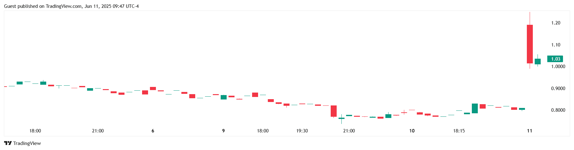 Interactive Strength є публічною компанією, чиї акції торгуються на біржі Nasdaq. На тлі оголошення про створення резерву їхні котирування підскочили на більш ніж 47%, пробивши в моменті позначку в $1,25, після чого відкотилися: