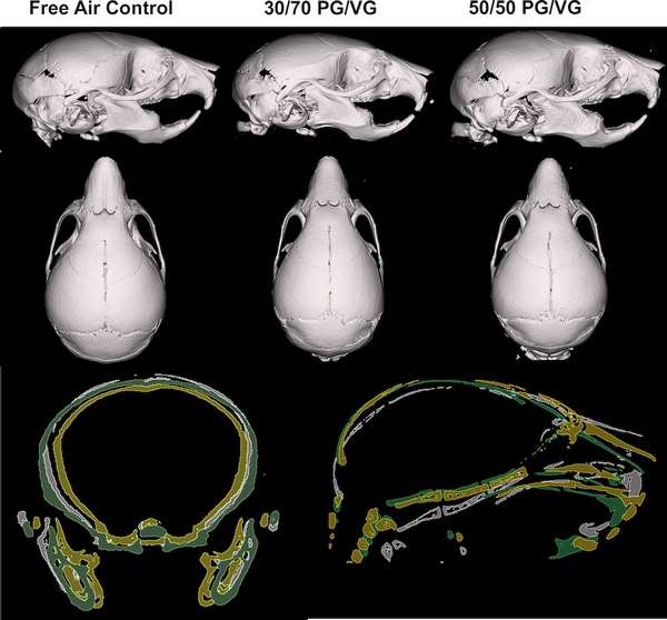 Результати дослідження, проведеного під керівництвом анатома Джеймса Крея з Університету штату Огайо, демонструють, що навіть базові інгредієнти рідин для вейпінгу можуть бути шкідливими. В експерименті використовувались дві комбінації пропіленгліколю та гліцерину – 50/50 і 30/70, без додавання нікотину чи ароматизаторів. Миші вдихали пари по одній затяжці щохвилини протягом чотирьох годин щоденно, п’ять днів на тиждень протягом всієї вагітності. Після народження 140 мишенят, їхні черепи були проаналізовані методом 3D-реконструкції.