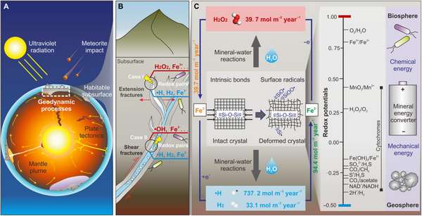 Китайські дослідники довели, що при розтріскуванні кварцвмісних порід у присутності води утворюються «водень, окислювачі та перетасоване залізо», як повідомляє журнал Science Advances. Цей процес імітує хімічне середовище, здатне підтримувати підземні мікроби, аналогічні тим, що мешкають у канадських шахтах без сонячного світла.
