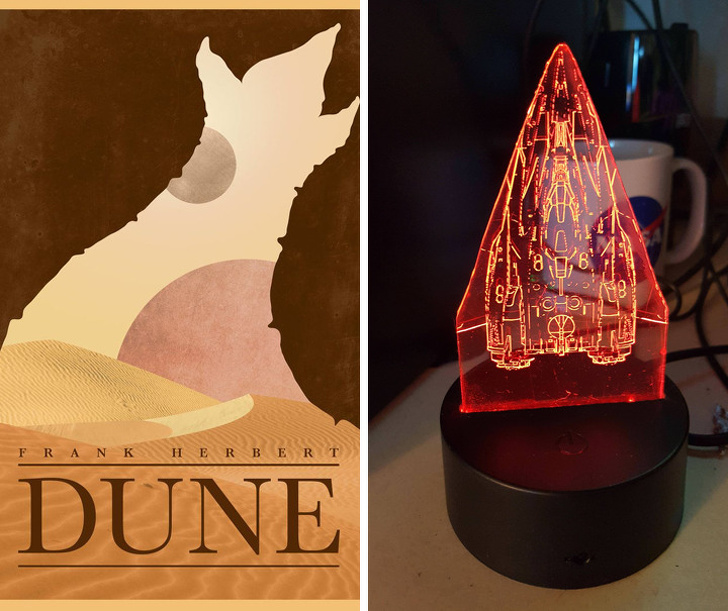 3D-проектор ще складно назвати повсякденною або хоча б звичною технологією, але він вже існує. А в романі «Дюна» голограми з’явилися ще у 1965 році. В цьому ж циклі книг Герберт згадує й інші винаходи, які або повністю передбачили нинішні технології, або частково: паракомпас, масляні лінзи, ядошукач, силова підвіска та інші.