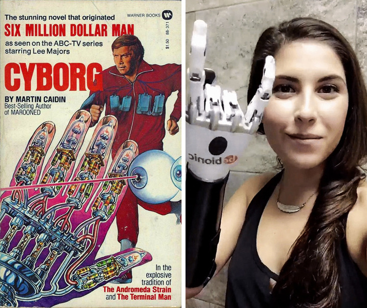 «Кіборг» Мартіна Кейдіна – це історія про людину, чиї органи після пошкодження замінюють механічними приладами. Головному герою пересаджують кілька ніг і рук та навіть вставляють механічне око. Це перший повний опис біонічних кінцівок, які сьогодні активно застосовуються в медицині. А з часу написання роману до першої успішної пересадки біонічної руки залишався ще 41 рік.