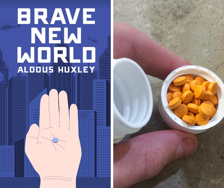 «Соми грам – і нема драм», – пише Олдос Хакслі в романі «Прекрасний новий світ». Сома – таблетка для підняття настрою. Їх приймає кожен герой моторошно-правдоподібної антиутопії. Можна вважати, що Хакслі передбачив не лише появу антидепресантів, але і в цілому окреслив напрямок розвитку фармацевтики під гаслом «Щоб бути здоровим, потрібно обов’язково приймати якісь таблетки».
