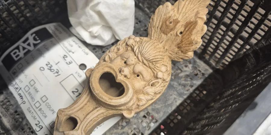 Під час розкопок великого римського кладовища в нідерландському місті Кёйк науковці знайшли унікальну олійну лампу. Її отвір для наливання горючої рідини виконаний у вигляді гротескного рота, а ручка нагадує витончений листок.