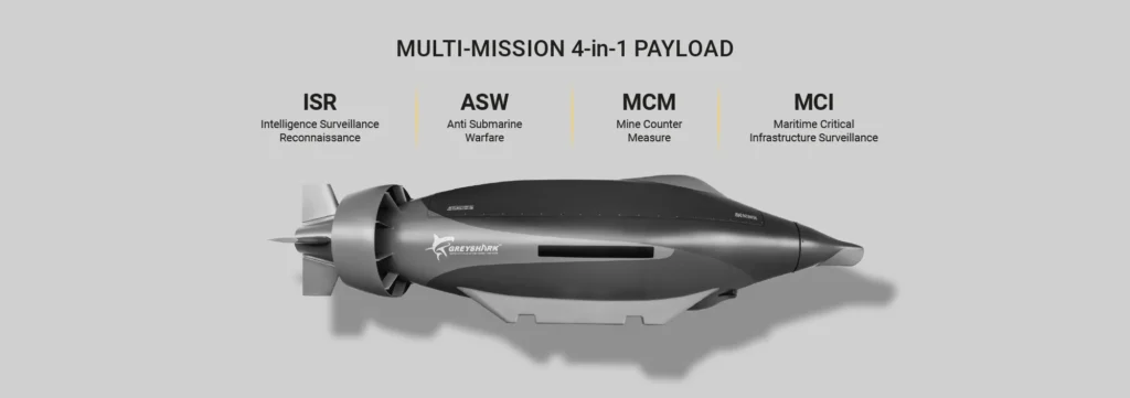 Обидві версії оснащені 17 сенсорами, які постійно збирають дані під час місії. Серед основних завдань — контроль стану підводних кабелів і трубопроводів, мінна розвідка, спостереження за рухом суден та виявлення ворожих підводних систем. GREYSHARK може діяти в режимі «рою» — до шести апаратів синхронізуються між собою, утворюючи єдину мережу спостереження, що інтегрується із системами кораблів, підводних човнів і берегових командних пунктів.