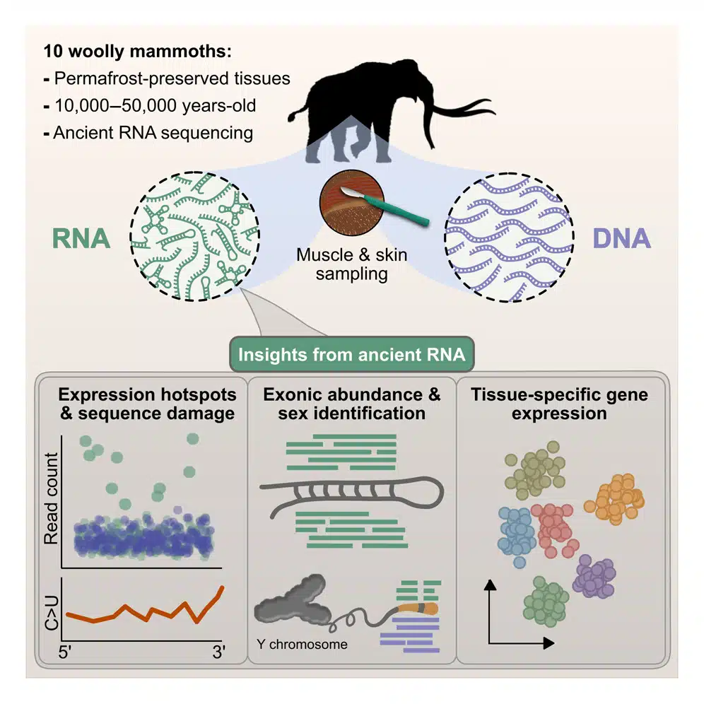 Стародавня РНК з мамонтів, знайдених у вічній мерзлоті, розкриває генну активність, тканинно-специфічну експресію та підказки щодо ідентифікації статі. Джерело: Cell