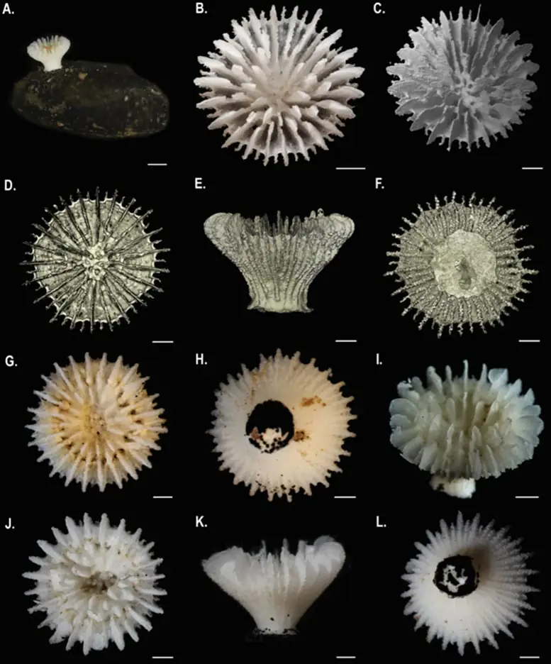 Дослідник виявив новий вид коралів-солітерів, що прикріплюються до поліметалевих конкрецій. Він отримав назву Deltocyathus zoemetallicus. Джерело: Музей природознавства, Лондон, та Гетеборзький університет.
